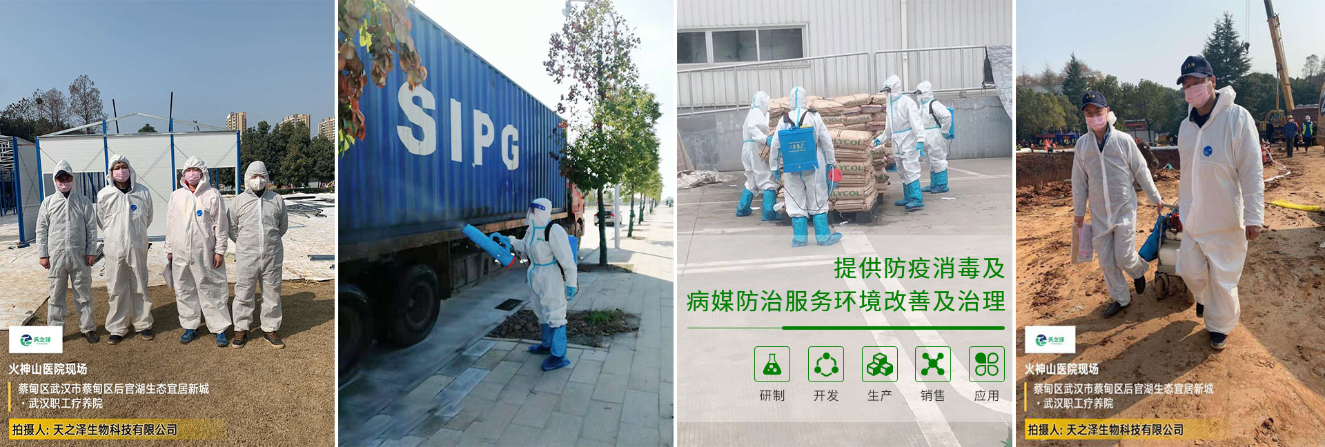 武漢市天之澤生物科技有限公司成立于2014年,是一家專業(yè)性提供防疫消毒及病媒防治服務環(huán)境改善及治理的公司,具備有害生物防治A級資質(zhì),消毒服務B級。公司自成立伊始就確立了科技興企的發(fā)展戰(zhàn)略,專注于環(huán)保產(chǎn)品研制、開發(fā)、生產(chǎn)、銷售及應用,聚集了優(yōu)秀的研發(fā)技術團隊、創(chuàng)新管理團隊和熟悉市場的營銷團隊,始終堅持技術與服務兩手抓的發(fā)展策略,能快速響應市場需求,提供個性化的產(chǎn)品與服務。